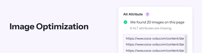 SEO Checker will identify images that need to be optimized by evaluating their: