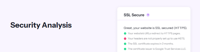 Our SEO analysis tool will also look at your URL and whether it’s optimized for search engines by looking at whether your URL: