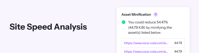 Our SEO Checker will analyze your page speed, list ways to improve it if needed, and even highlight specific files you can compress to speed up your site.
